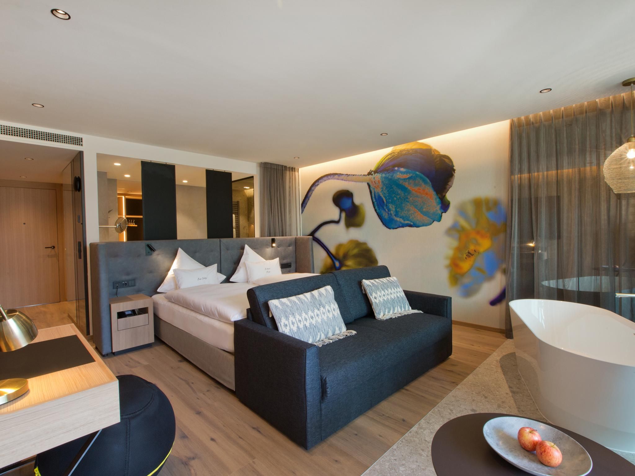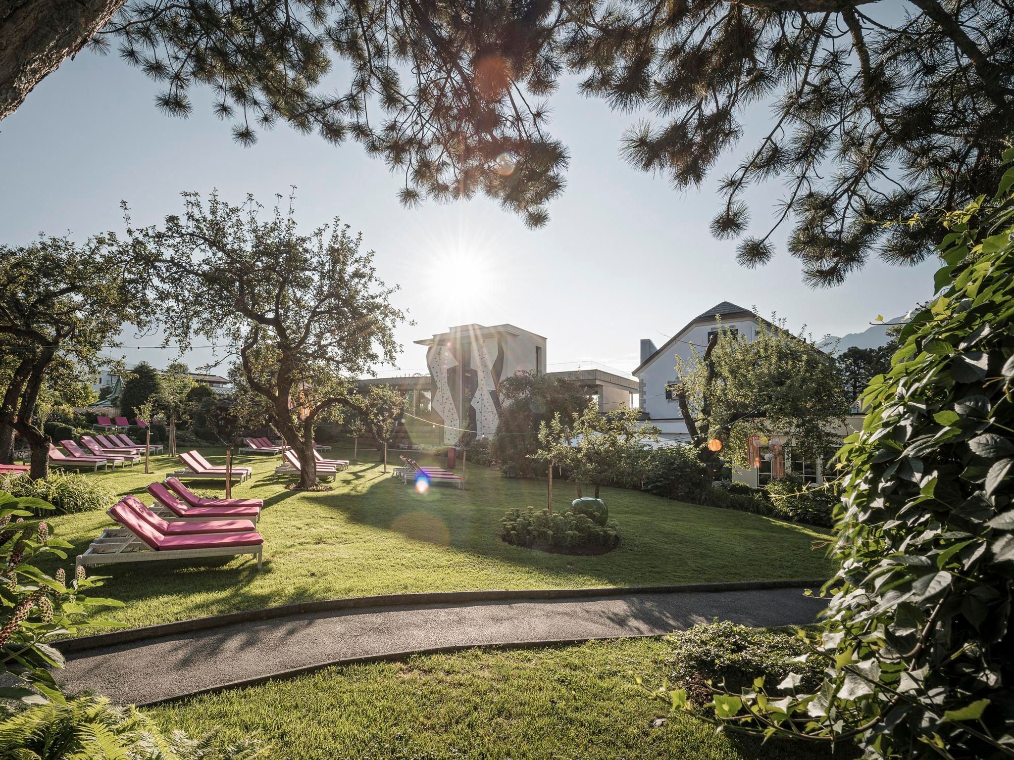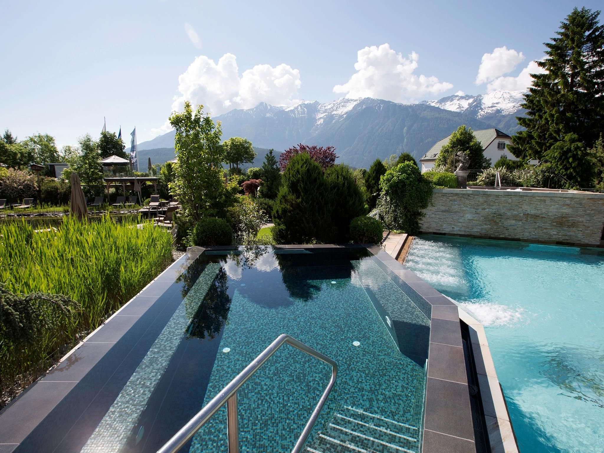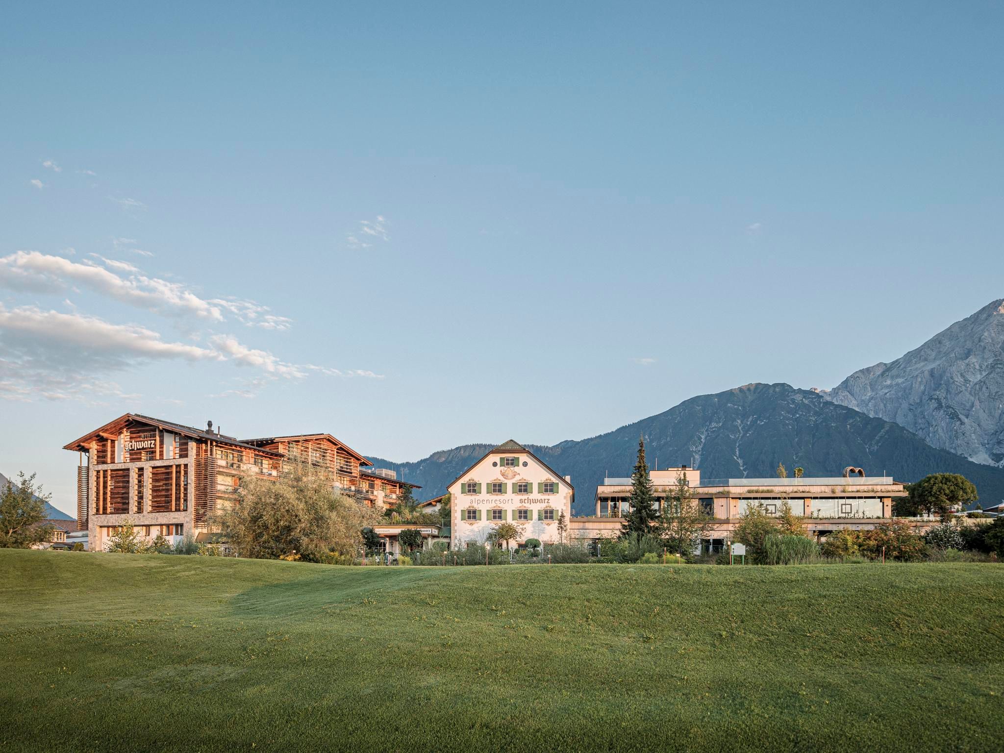 A soli 35 chilometri a ovest di Innsbruck, immerso nell'impressionante scenario naturale dell'altopiano di Mieminger, si trova l'Alpenresort Schwarz, a conduzione familiare, che offre una vasta gamma di attività all'aperto durante tutto l'anno, tra cui escursioni, golf e ciclismo. Situato direttamente sul campo da golf a 27 buche e circondato da un panorama montano mozzafiato, il resort offre una vasta gamma di attività per tutte le età. La nuova Bliss House, con fitness club e centro sportivo, attrezzature innovative e un programma di corsi di prima classe, è un vero e proprio fiore all'occhiello per i vacanzieri attivi.Spa e strutture per la saluteLa salute, e soprattutto il mantenersi in salute, sono elementi centrali della filosofia della nostra Me Holistic Spa, che si estende su una superficie di 5.500 m².Il cuore dell'oasi del benessere è lo Schwarz Water World, con nove piscine, coperte e scoperte, distribuite su due pool house inondate di luce e sull'idilliaco giardino paradisiaco. Per garantire che tutte le generazioni abbiano il loro tornaconto, i mondi acquatici sono divisi in piscine relax e piscine per famiglie. Il laghetto naturale di 1.100 m² è la combinazione perfetta tra l'esperienza della natura e il piacere del bagno. Il fiore all'occhiello del mondo acquatico è la piscina a sfioro di 25 metri, mentre l'ampio villaggio sauna affascina con il suo fantastico giardino e l'impressionante panorama montano - un'esperienza di sauna in mezzo alla natura. Una piscina di acqua calda, un lago di montagna per nuotare e un percorso di riflessologia completano la vasta gamma di saune, cabine riscaldate e sale relax.Le competenze mediche sono offerte da un trio di medici esperti - la dott.ssa Heidi Pirktl, la dott.ssa Irene Brunhuber e la dott.ssa Julia Cordin - con pacchetti salute completi e trattamenti individuali personalizzati.Una casa per tutte le generazioniL'Alpenresort Schwarz è un luogo per tutte le generazioni. Le famiglie beneficiano di un'amorevole assistenza ai bambini per tutto il giorno a partire dai tre anni, di un variegato programma per i giovani e di offerte su misura per ogni fascia d'età. I punti salienti sono lo zoo, lo scivolo d'acqua di 92 metri e la parete di arrampicata. Gli adulti possono rilassarsi negli ampi spazi della spa, giocare a golf o fare esperienze culinarie di altissimo livello.Varietà culinariaOltre al ristorante Genusswelt, gli ospiti possono gustare un'ampia gamma di specialità culinarie:Ristorante 141 di Joachim Jaud | Premiato con 2 stelle dalla Guida Michelin, 4 toques da Gault&Millau, 98 punti da Falstaff À la carte ristorante Greenvieh | Bistecche succulente dalla griglia a carbone, ciotole sofisticate e specialità stagionali Stöttlalm | La posizione perfetta in mezzo alla natura con una vista panoramica unica
