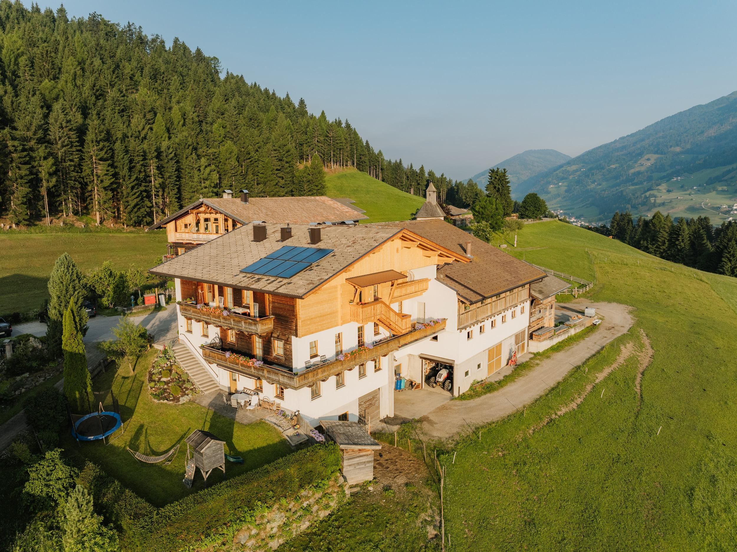 La nostra fattoria biologica vanta una posizione idilliaca con spettacolare vista panoramica sulla Val Pusteria fino alle celebri Dolomiti di Lienz. Soprattutto i bambini apprezzeranno gli ampi spazi per il tempo libero - che vogliano fare un giro in trattore o giocare con la sabbia. Da noi il divertimento è assicurato! Gli amanti della natura avranno la possibilità di praticare numerose attività sportive nei pressi dello Hattlerhof, oppure prendere parte a escursioni lungo gli svariati percorsi della zona. Saremo inoltre lieti di introdurvi alla vita quotidiana della nostra fattoria facendovi partecipare alle attività legate alla cura degli animali. Lasciatevi svegliare dai raggi del sole per poi fare colazione in compagnia della vostra famiglia sulla splendida terrazza o sul balcone. Nei nostri accoglienti e spaziosi appartamenti per vacanze vi sentirete a vostro agio. Sono dotati di 2 camere da letto, bagno e WC, TV via satellite, WLAN.