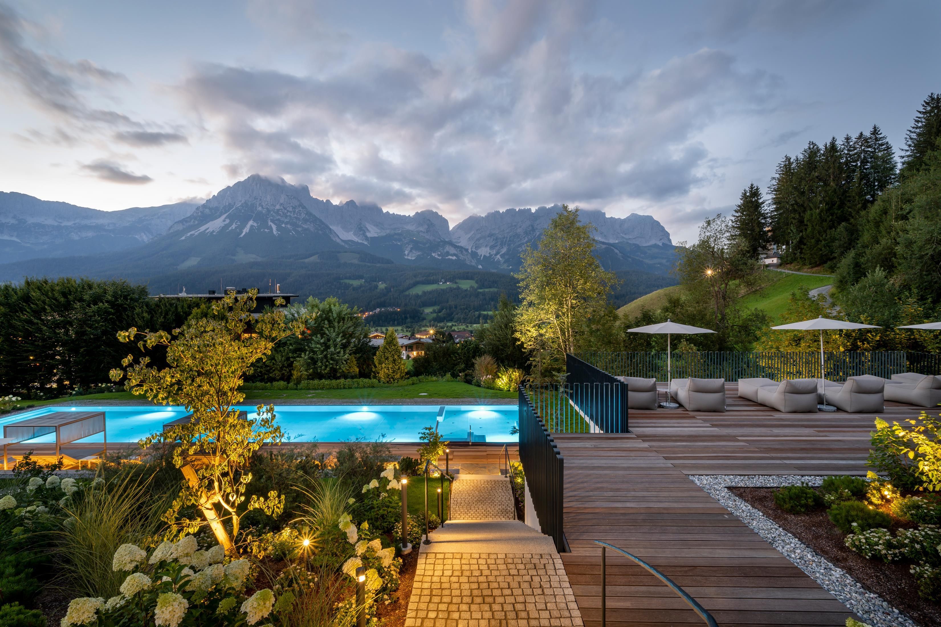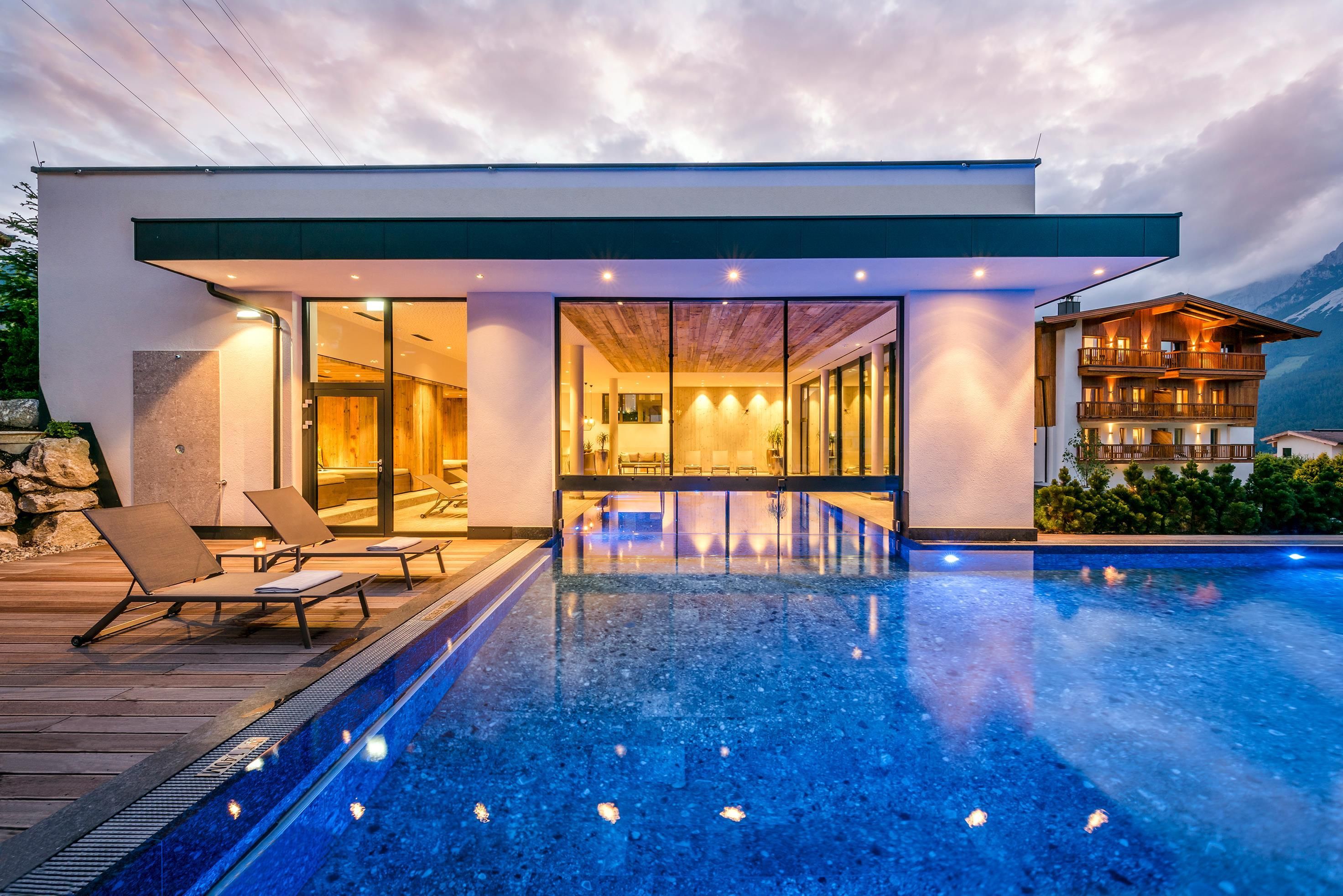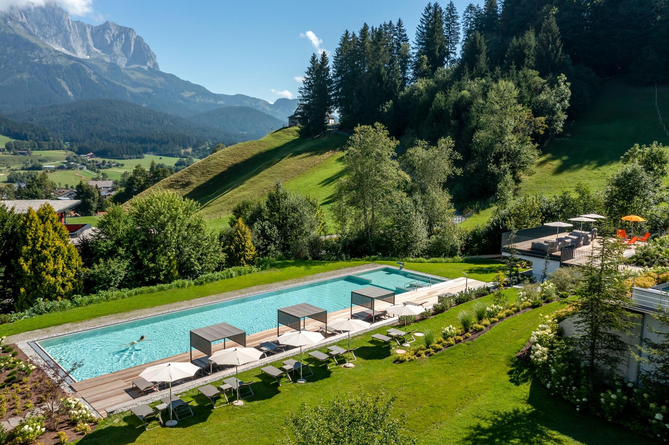 Un luogo di cui innamorarsi. Nella spaziosa casa vacanze ai piedi del Wilder Kaiser in Tirolo, gestita con grande cura e calore dalla famiglia Windisch, potrete godervi appieno la vita. Con spaziose camere doppie e suite eleganti e lussuose, l'edificio principale offre a ogni ospite una sistemazione individuale.Vacanze con tutti i sensiIl ristorante gourmet dell'Hotel DER BÄR - premiato con il Falstaff - serve creazioni regionali e internazionali con la consueta alta qualità. Vi sentirete a casa anche nel moderno bar dell'hotel, dove vini pregiati e drink raffinati sono il modo perfetto per concludere la serata. Non c'è niente di più orso di questo. Piacere ad alto livelloLa piscina a sfioro lunga 20 metri, riscaldata a 31° C tutto l'anno, promette un relax illimitato in uno scenario da sogno - ma è "solo" uno dei tanti punti di forza! L'intero stabilimento balneare con piscina coperta, area sauna e sala relax con magnifiche finestre panoramiche vi lascerà senza fiato. Sia all'interno che all'esterno, sarete sempre ricompensati con una vista unica sul Wilder Kaiser. Nelle camere e nelle suite, che combinano sapientemente il fascino alpino con lo chic moderno, la maestosa montagna fa parte anche degli interni, per così dire. E la magnifica natura delle Alpi di Kitzbühel, questo paesaggio imperiale, è un luogo meraviglioso per ricaricare le batterie in qualsiasi periodo dell'anno. In estate, i golfisti ricevono il 30% di sconto sul green fee nel vicino campo da golf Wilder Kaiser/Ellmau, mentre in inverno gli appassionati di sport invernali possono sperimentare la nuova dimensione dello sci sui 279 chilometri di piste dello SkiWelt Wilder Kaiser/Brixental. Per i più piccoli abbiamo un miniclub, spazioso e luminoso, proprio accanto al giardino, mentre i più grandicelli si ritrovano nella sala chill. Provate voi stessi. Saremo lieti di accogliervi nella nostra solita atmosfera calda e amichevole.