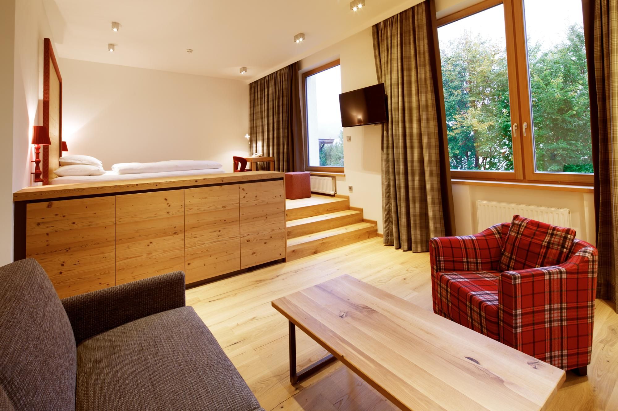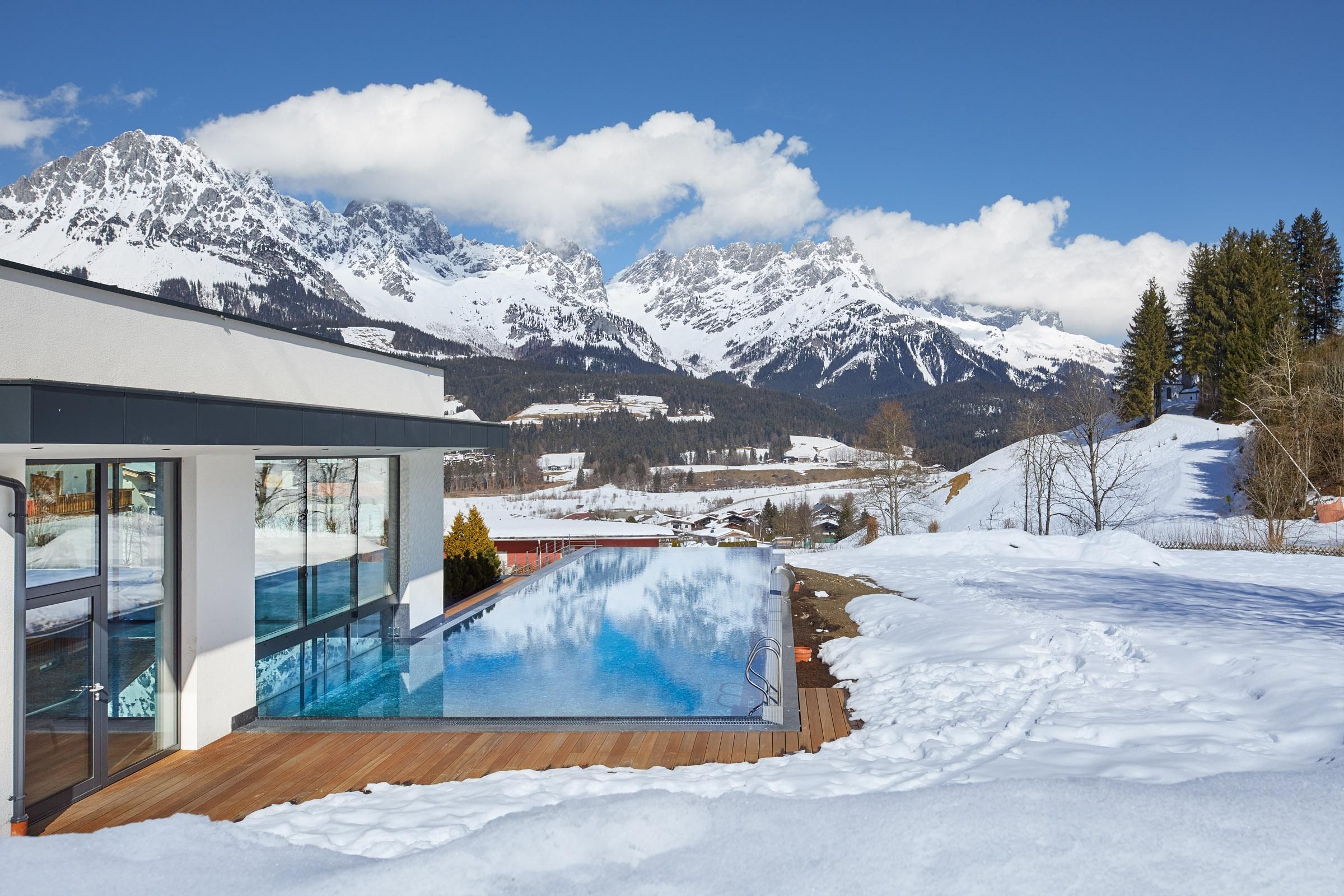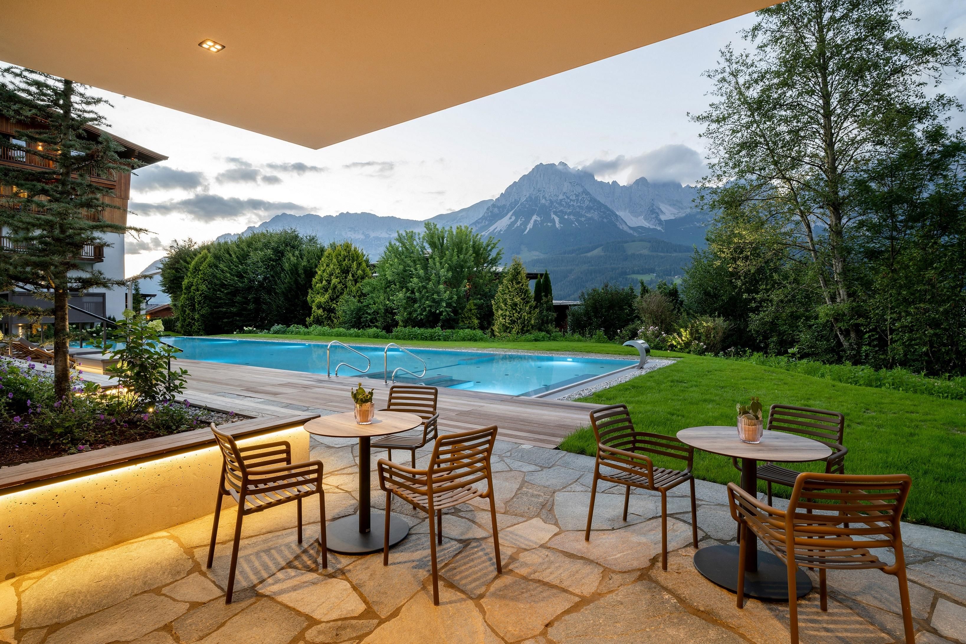 Un luogo di cui innamorarsi. Nella spaziosa casa vacanze ai piedi del Wilder Kaiser in Tirolo, gestita con grande cura e calore dalla famiglia Windisch, potrete godervi appieno la vita. Con spaziose camere doppie e suite eleganti e lussuose, l'edificio principale offre a ogni ospite una sistemazione individuale.Vacanze con tutti i sensiIl ristorante gourmet dell'Hotel DER BÄR - premiato con il Falstaff - serve creazioni regionali e internazionali con la consueta alta qualità. Vi sentirete a casa anche nel moderno bar dell'hotel, dove vini pregiati e drink raffinati sono il modo perfetto per concludere la serata. Non c'è niente di più orso di questo. Piacere ad alto livelloLa piscina a sfioro lunga 20 metri, riscaldata a 31° C tutto l'anno, promette un relax illimitato in uno scenario da sogno - ma è "solo" uno dei tanti punti di forza! L'intero stabilimento balneare con piscina coperta, area sauna e sala relax con magnifiche finestre panoramiche vi lascerà senza fiato. Sia all'interno che all'esterno, sarete sempre ricompensati con una vista unica sul Wilder Kaiser. Nelle camere e nelle suite, che combinano sapientemente il fascino alpino con lo chic moderno, la maestosa montagna fa parte anche degli interni, per così dire. E la magnifica natura delle Alpi di Kitzbühel, questo paesaggio imperiale, è un luogo meraviglioso per ricaricare le batterie in qualsiasi periodo dell'anno. In estate, i golfisti ricevono il 30% di sconto sul green fee nel vicino campo da golf Wilder Kaiser/Ellmau, mentre in inverno gli appassionati di sport invernali possono sperimentare la nuova dimensione dello sci sui 279 chilometri di piste dello SkiWelt Wilder Kaiser/Brixental. Per i più piccoli abbiamo un miniclub, spazioso e luminoso, proprio accanto al giardino, mentre i più grandicelli si ritrovano nella sala chill. Provate voi stessi. Saremo lieti di accogliervi nella nostra solita atmosfera calda e amichevole.
