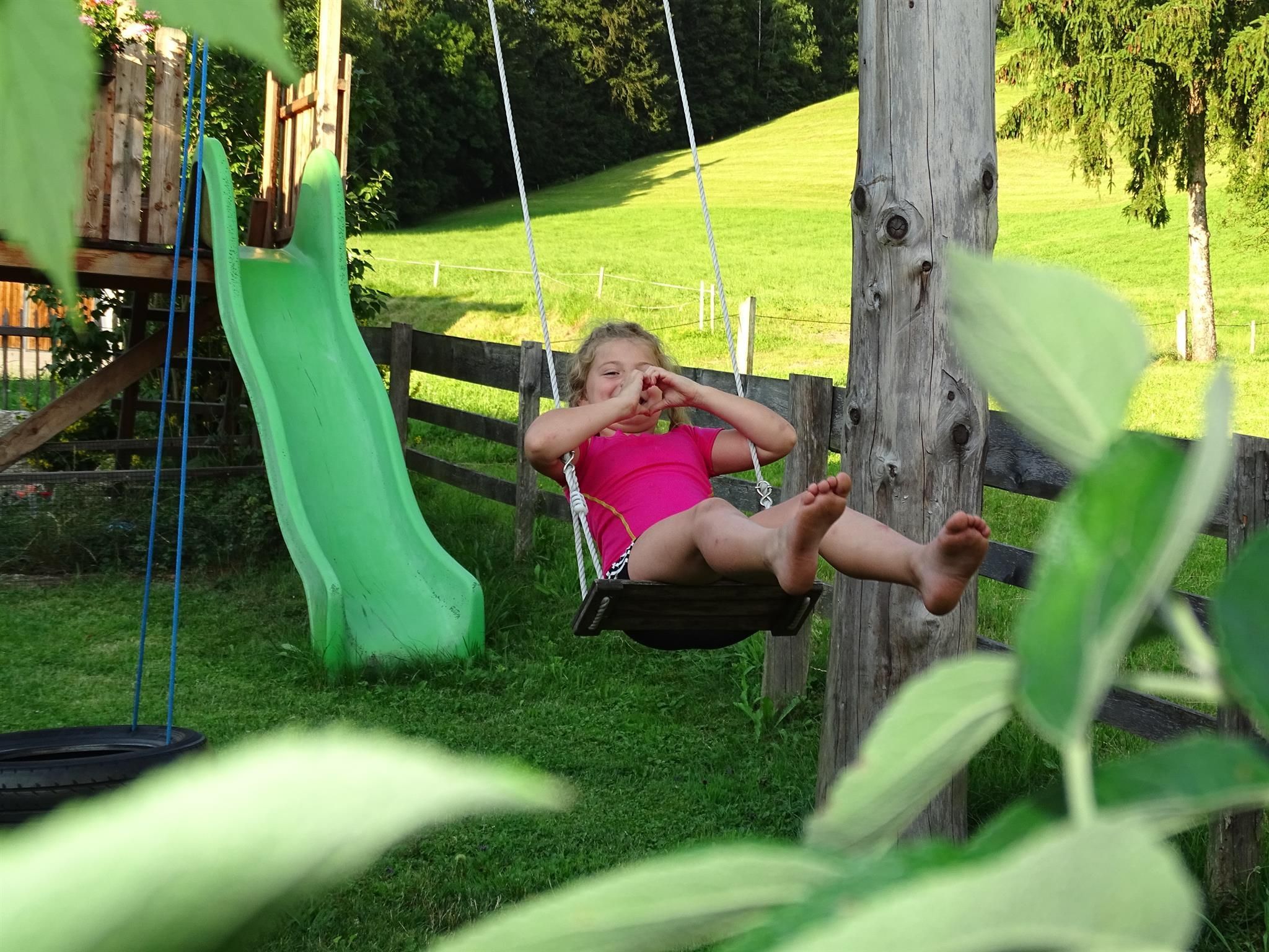Il nostro maso è soprattutto un paradiso per i bambini: mentre i genitori si possono rilassare sul balcone oppure nel solarium, i bambini possono andare in esplorazione. I piccoli possono giocare, correre e divertirsi nel giardino intorno alla casa, lontano dal traffico. L'area giochi ha attrezzature come altalene, scivolo, tappeto elastico, piscina, trattore..... e la foresta e i prati ampliano l'area giochi all'infinito!