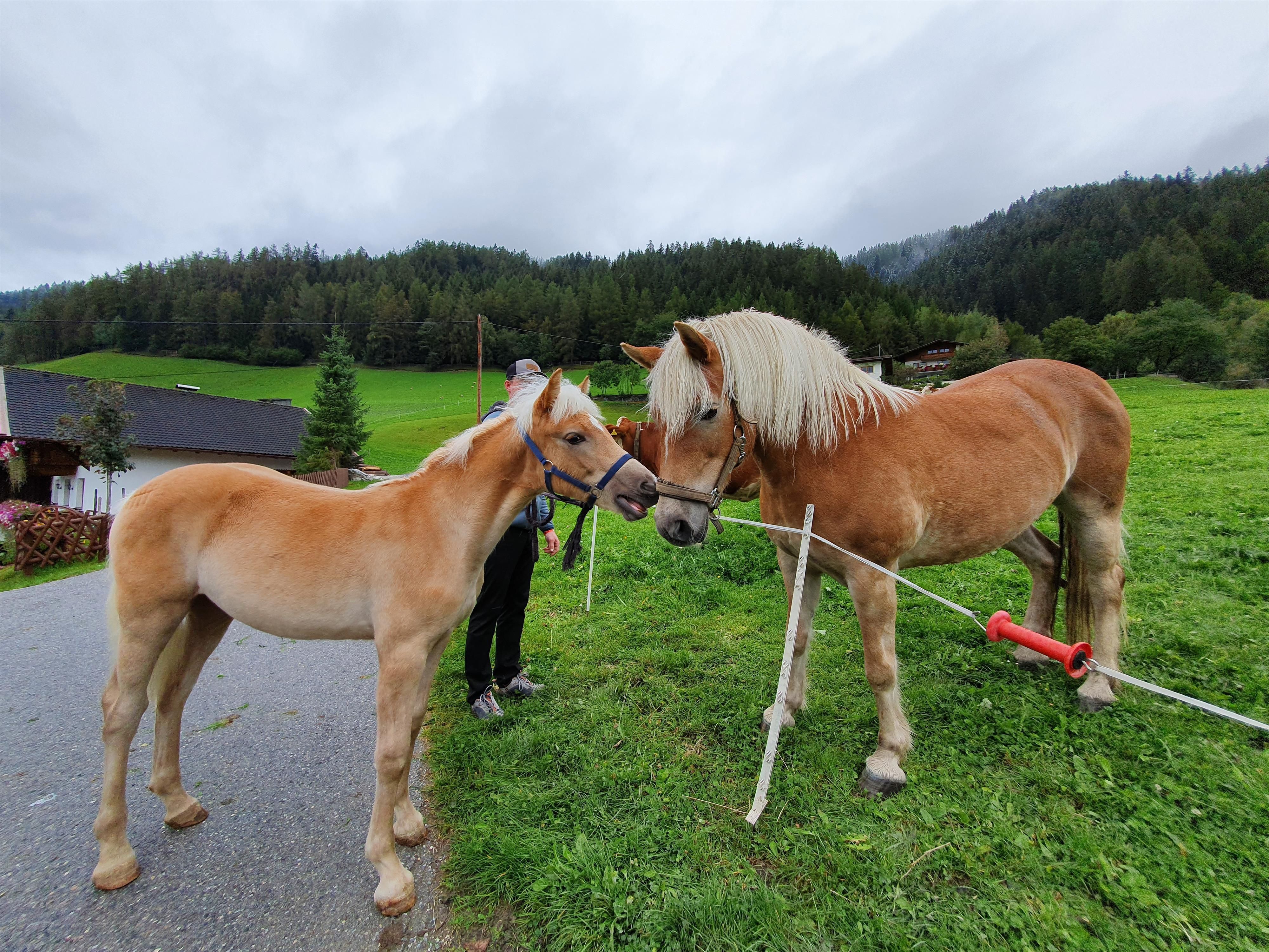 Le nostre femmine Haflinger Sissi e Salaya, così come i nostri conigli, non vedono l'ora di essere accarezzati.