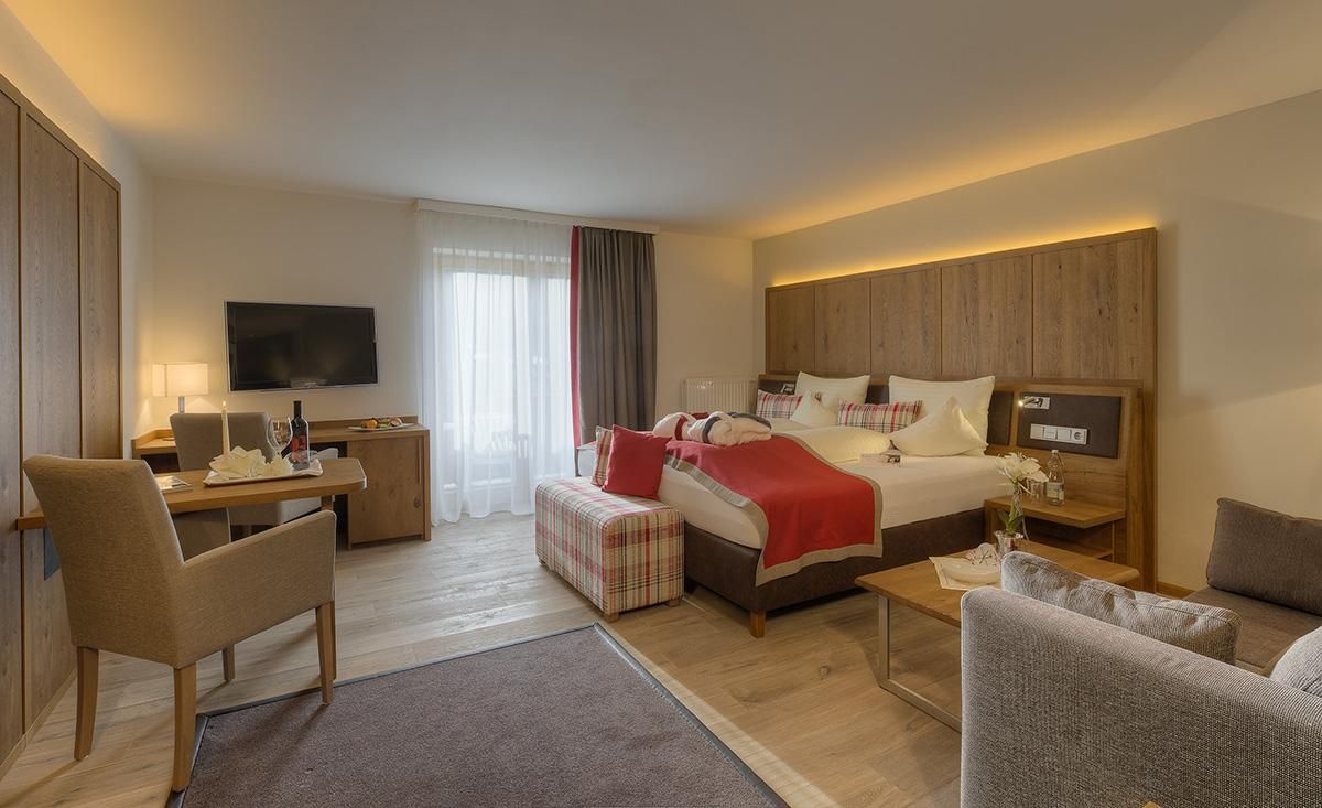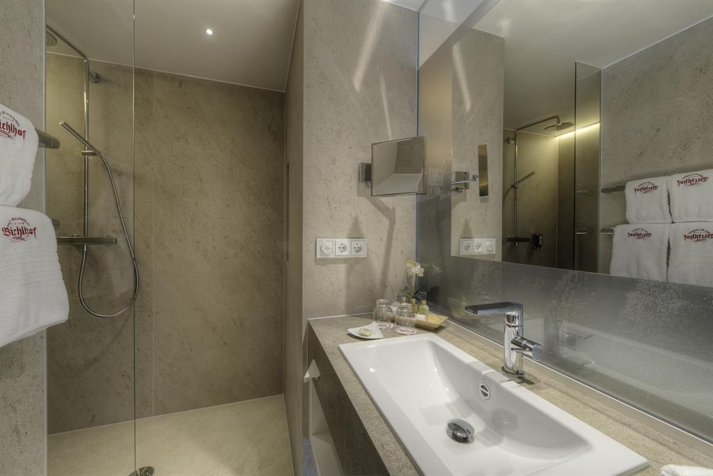 L'Hotel Der Bichlhof è situato in una posizione paradisiaca sul lato più soleggiato di Kitzbühel. 52 camere doppie, camere familiari e suite con una magnifica vista sulla città e sulle montagne circostanti di Kitzbühel. L'oasi dell'armonia del Bichlhof vi invita a rilassarvi su oltre 1200 m² con piscina interna panoramica, piscina esterna riscaldata tutto l'anno con ampio prato per prendere il sole, area sauna con sauna in legno antico, biosauna tirolese, bagno di vapore alle erbe, cabina a infrarossi, vasca Kneipp. Sala relax con caminetto, sala fitness, programmi settimanali di sport e benessere. Nei nostri ristoranti offriamo un'eccellente cucina gourmet di altissimo livello e nella nostra fornitissima cantina troverete vere e proprie rarità. La pensione gourmet per le coccole può essere prenotata su richiesta in loco al prezzo di 40,00 EUR a persona/al giorno. Trasferimento giornaliero gratuito dall'hotel alla funivia Hahnenkamm e ritorno. Gli skipass possono essere emessi direttamente in hotel.