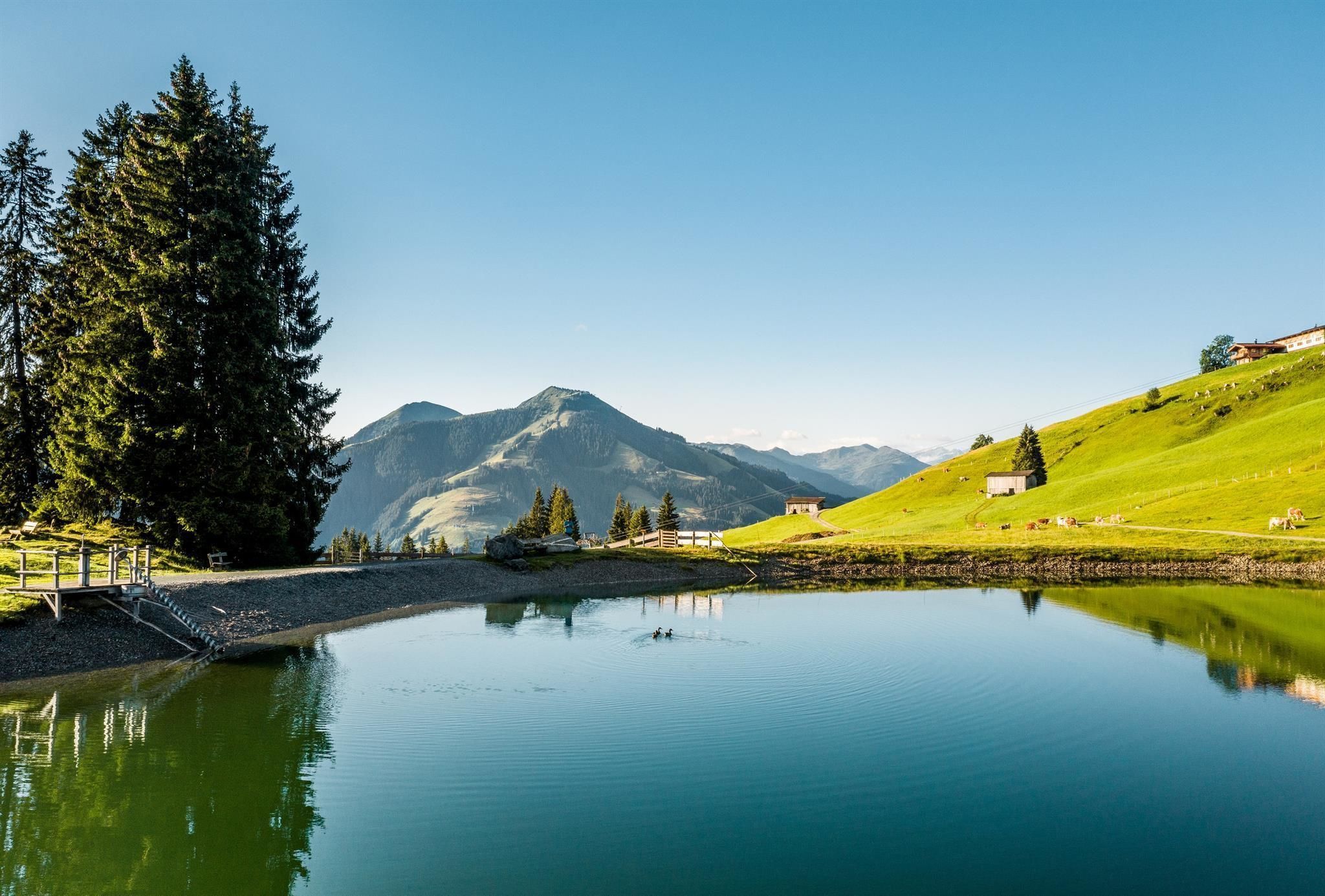 Il lago balneabile di Kirchberg offre un divertimento balneare per famiglie nel mezzo delle Alpi di Kitzbühel. Con le sue rive poco profonde, un ampio prato per prendere il sole e un'area per bambini, è l'ideale per una rilassante giornata estiva. Le attrazioni sportive, come una piattaforma per i tuffi e un campo da beach volley, offrono un'ampia varietà.