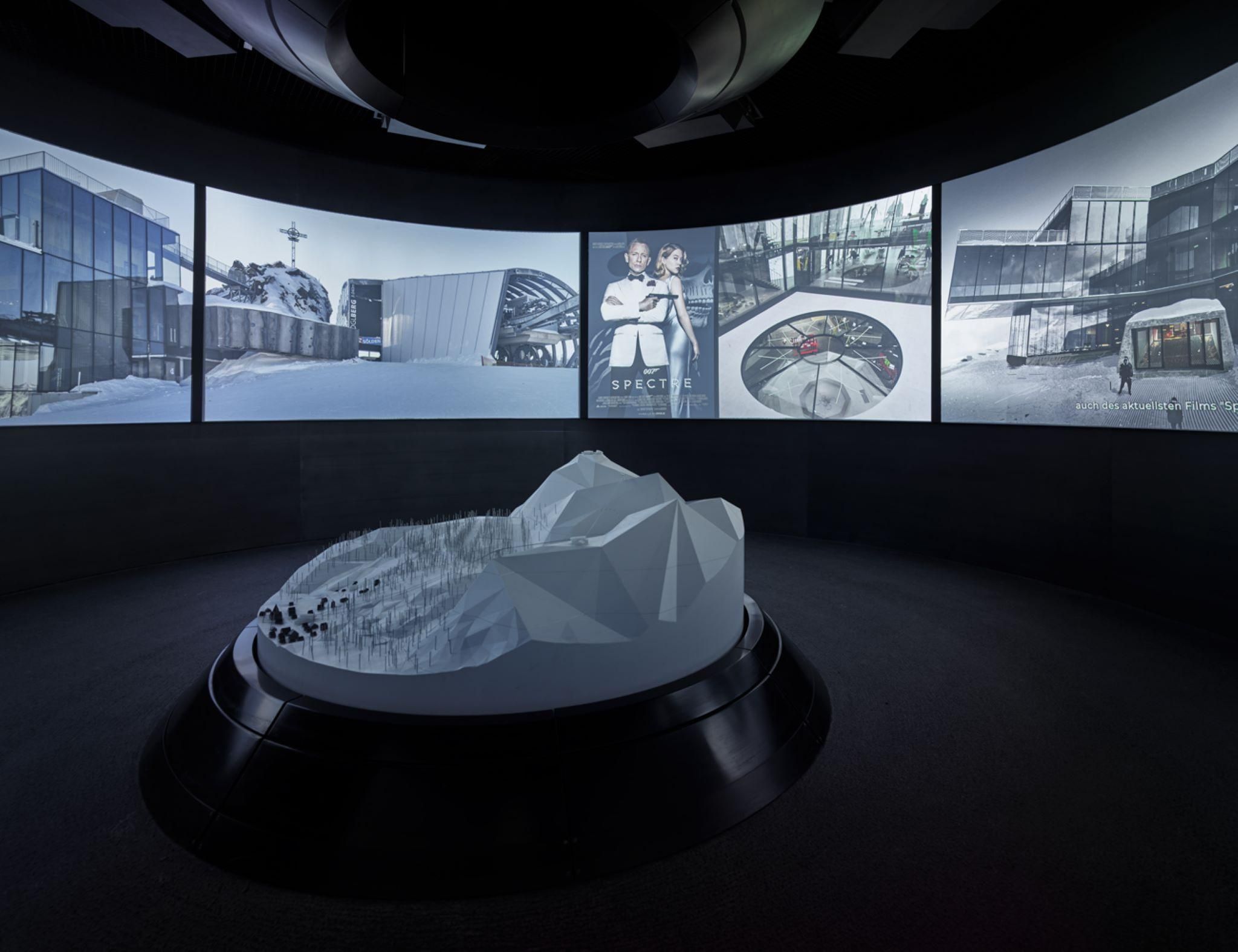 1.300 m² di spazio espositivo in 9 sale e un'enorme piazza all'aperto permettono ai visitatori di immergersi negli elementi classici di un film di James Bond. Oltre alle scene originali di "SPECTRE" girate a Sölden, vengono presentati in modo interessante e interattivo molti contenuti emozionanti tratti dalle altre 25 avventure di Bond.