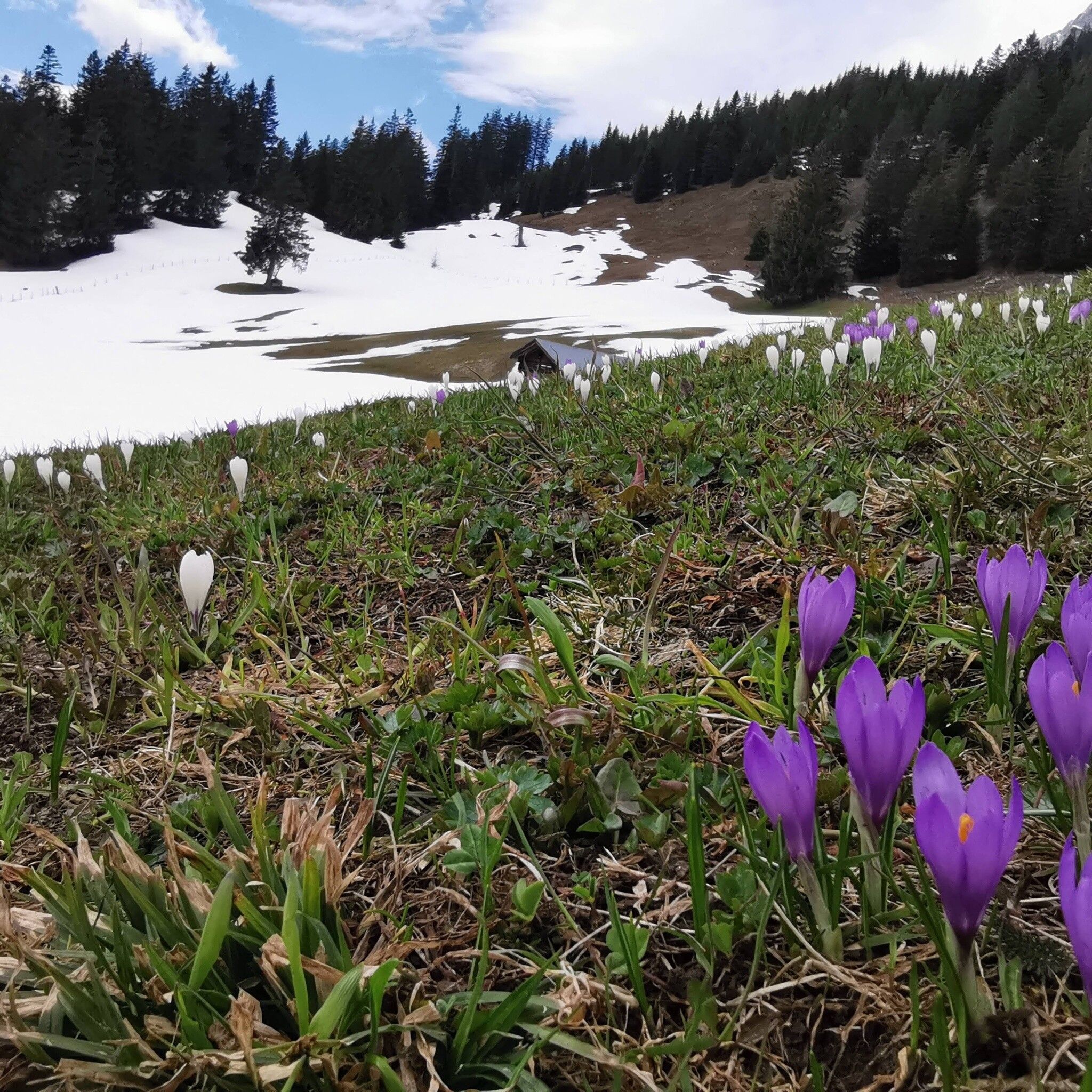 Un momento prima ci si trova nell'ampia valle dell'Inn, un momento dopo si ammirano le selvagge vette del Karwendel. La Walder Alm è un vero e proprio luogo da sogno, il contrasto tra l'incantevole paesaggio alpino e l'asprezza del Karwendel è quasi incredibile. E un alpeggio così rustico che sembra quasi di essere in un film di Heidi. In primavera, i prati alpini sono in piena fioritura di crochi.