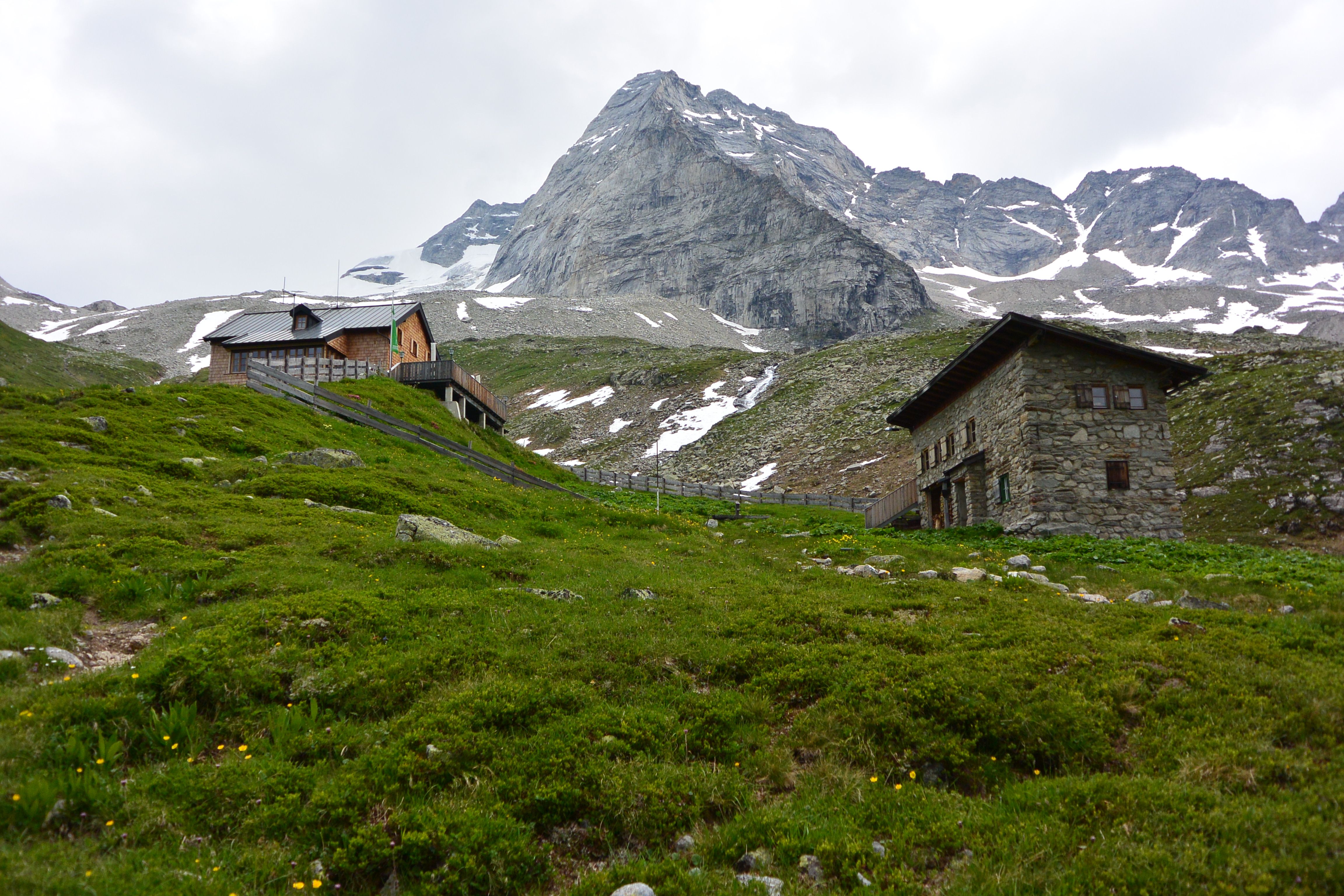 Il rifugio Bremer Hütte si trova sulla cresta principale delle Alpi a 2.413 metri sul livello del mare. È una base popolare per le escursioni più lunghe nelle Alpi dello Stubai.
