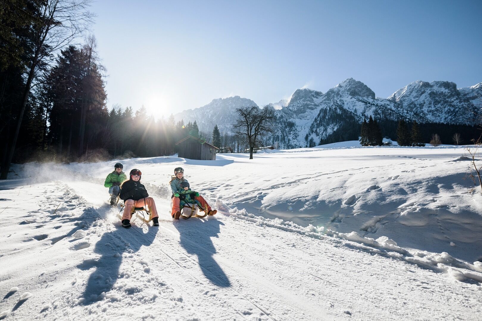 Avventurosa, sicura, con una piacevole pendenza e un meraviglioso punto di ristoro: la pista per slittini della Aschinger Alm è perfetta per le famiglie.