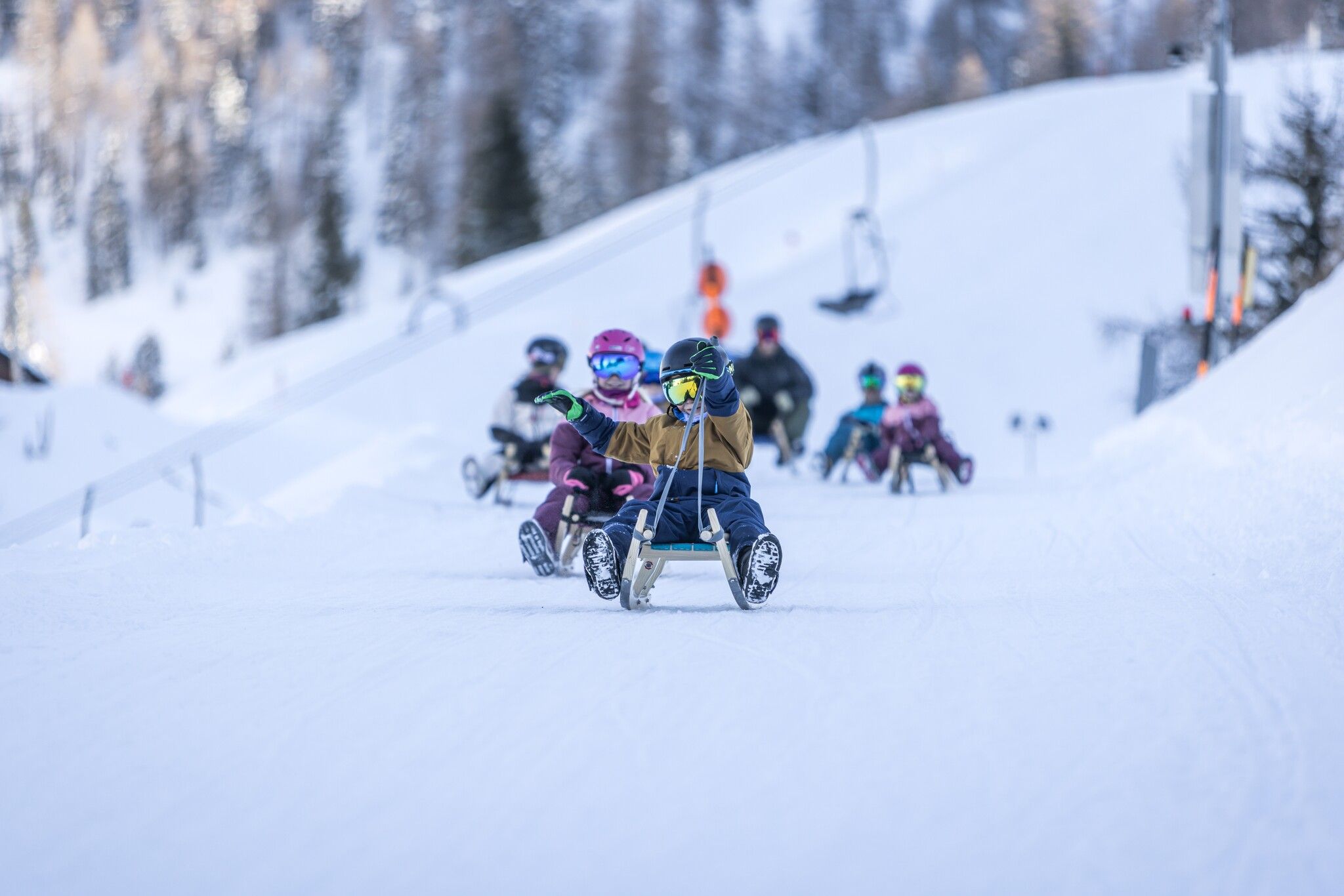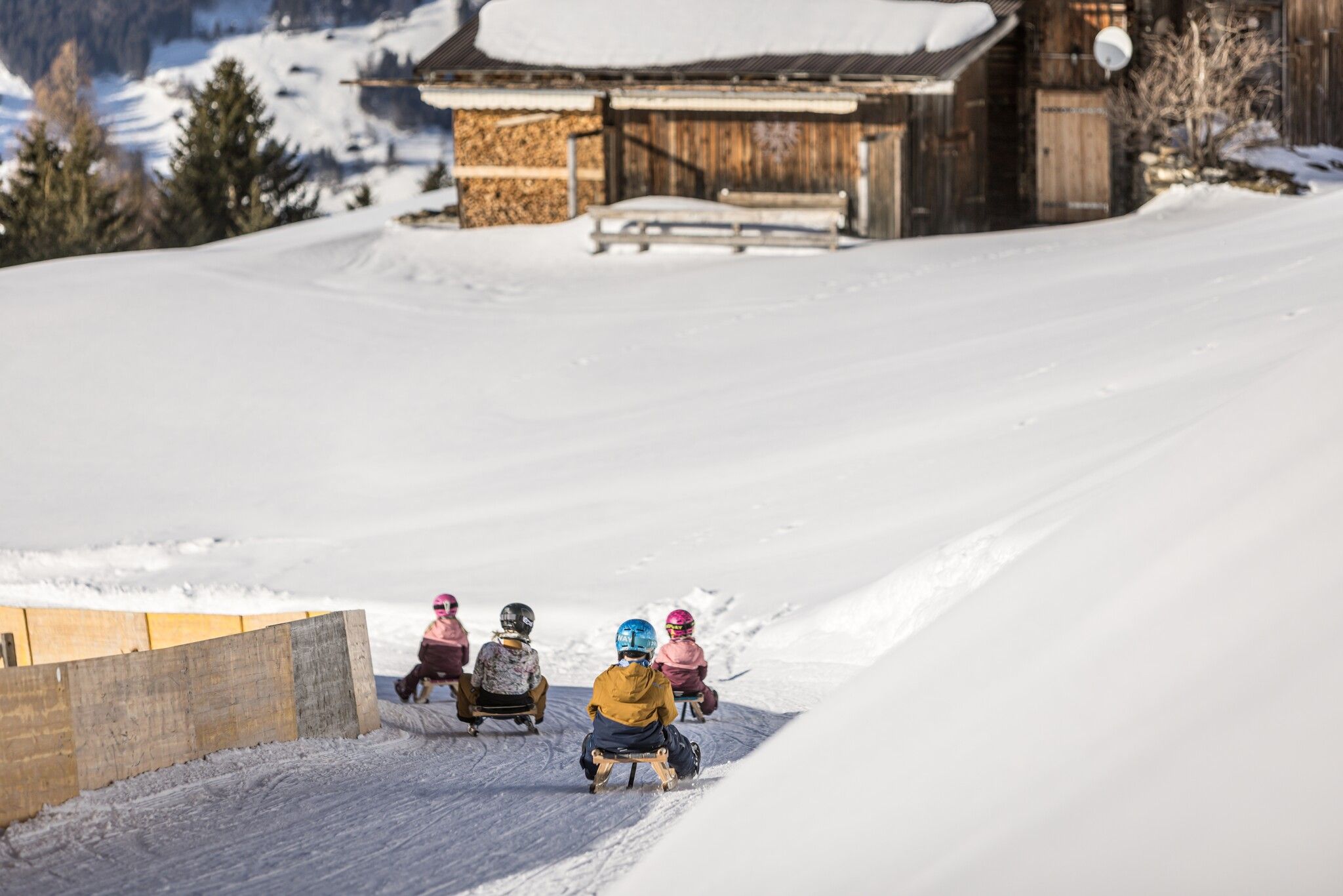 In Tirolo esistono numerose piste da slittino notturne, illuminate di sera e il cui punto di partenza è solitamente raggiungibile con la funivia, che prolunga di conseguenza l'orario di funzionamento in determinati giorni di slittino. Alcune delle nostre piste da slittino preferite si trovano nelle immediate vicinanze del capoluogo di provincia Innsbruck, come quelle sulla montagna della famiglia Rangger Köpfl, Maria Waldrast ai piedi del Serles, la pista da slittino più alta del Tirolo a Kühtai o all'ingresso della Valle dello Stubai sull'Elfer o a Mieders. Ma anche due fantastiche piste da slittino nella Pitztal sull'Hochzeiger o sul Gerlosstein nella Zillertal Arena. Come ad Achenkirch nel comprensorio sciistico di Christlum o a Virgen nel Tirolo Orientale con la rustica Würfelehütte. Ci sono diverse piste da slittino notturne nell'area della Valle Brixental con l'Hexenritt e la Mondrodelbahn a Söll e Hochsöll, sull'Astberg a Going e sul Gaisberg a Kitzbühel. Tutte le nostre piste da slittino qui presentate hanno il marchio di qualità di pista naturale tirolese dello Stato del Tirolo. Vengono battute quotidianamente e alcune sono addirittura innevate.